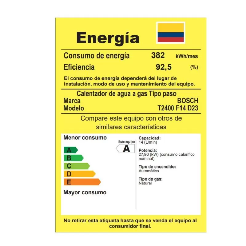 Sumérgete en la experiencia única de nuestro calentador de agua a gas Essential Therm 1400 F: eficiencia y diseño cautivador. Compacto y electrónico, brinda agua caliente al instante para un comfort sin límites. El exclusivo diseño Roundagon Bosch, con 8 sistemas de seguridad, fusiona elegancia y seguridad. Ajusta la temperatura con dos perillas, ahorra gas con eficiencia energética y selector de potencia, garantizando durabilidad con un intercambiador 100% en cobre. Incluye un ventilador para expulsar gases eficazmente. Se enciende automáticamente al abrir el grifo de agua caliente. Tu inversión está respaldada con 3 años de garantía, una promesa de calidad y seguridad. Descubre el arte de transformar tu rutina diaria con nuestro calentador, donde cada detalle es una invitación al comfort extraordinario.