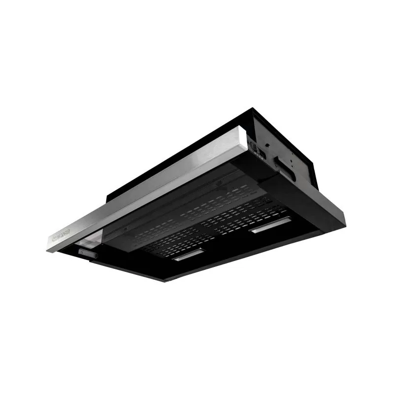 Campana Telescópica extraplana con frente en Acero Inoxidable de 60 cm de fácil limpieza embebida en el mueble de la cocina creando un ambiente elegante , cómodo y agradable.