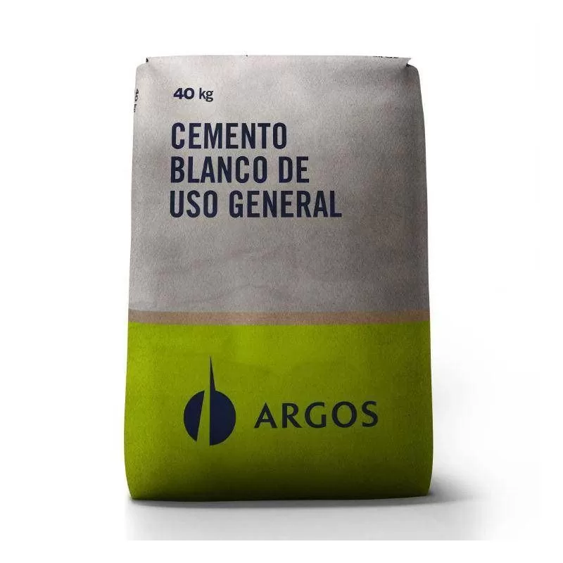 Cemento Argos Blanco 40 kg: Este cemento es producido especialmente para obras que deben cumplir especificaciones estructurales y arquitectónicas. En combinación con pigmentos, permite obtener diferentes colores, acabados, formas y texturas.