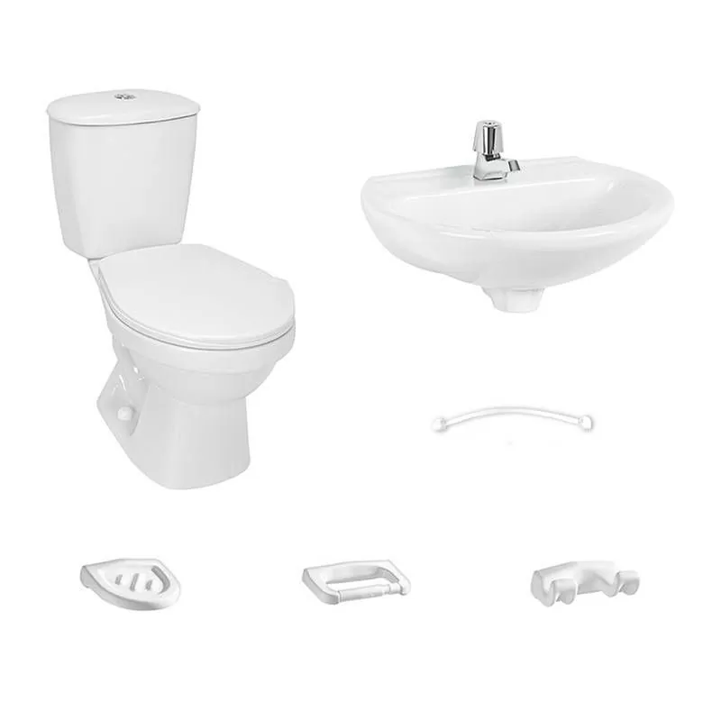 Combo Laguna Tamara Blanco: Incluye Sanitario, Lavamanos sin pedestal, Grifería y Accesorios.