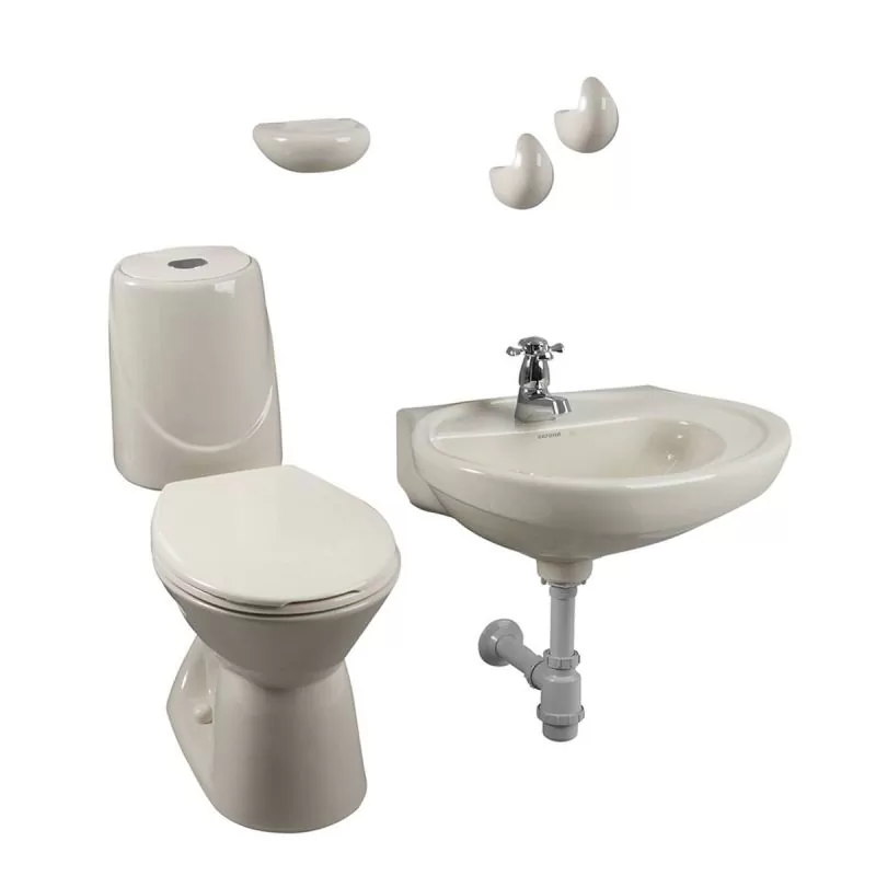 Combo Happy II Bone: Incluye Sanitario, Lavamanos , Grifería y Accesorios