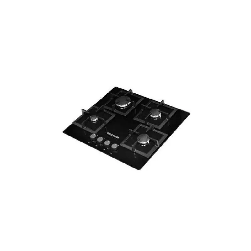 Estufa en vidrio templado de seguridad con bordes redondeados, encendido electrónico incorporado y parrillas en hierro fundido.