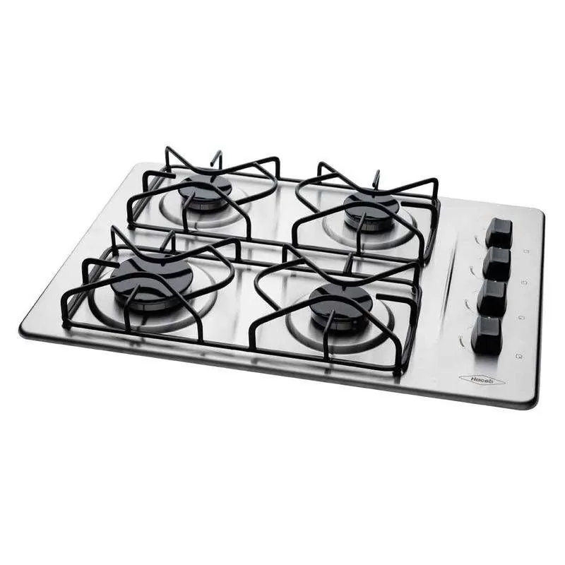 Estufa De Empotrar Inox 60X43 Cm Gas Natural Haceb: Estufa de empotrar en acero inoxidable de 60 cm de ancho con parrillas en platina únicas en diseño con puntos de apoyo óptimos por recipiente para más estabilidad y seguridad al cocinar (4) puestos.