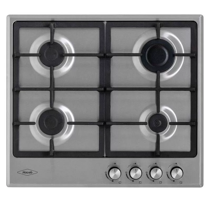 Cubierta Centeno Haceb 60 Inox Haceb: Estufa de empotrar media 60 cm, mesa en acero inoxidable de alta calidad, parrillas continuas en hierro fundido que brindan mayor estabilidad y seguridad, zona de encharque.