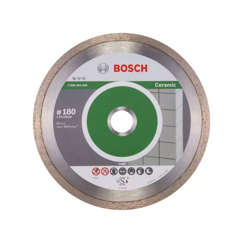 Los discos de corte de diamante Standard for Cerámica proporcionan cortes seguros en baldosas. Su borde de corte continuo consigue resultados precisos en todo tipo de baldosas. Además, los altos estándares de calidad del disco están garantizados por el centro de competencia en diamantes de Bosch, en Suiza. Utilice este disco para cortar cerámica, porcelana y gres. Es compatible con amoladoras angulares.