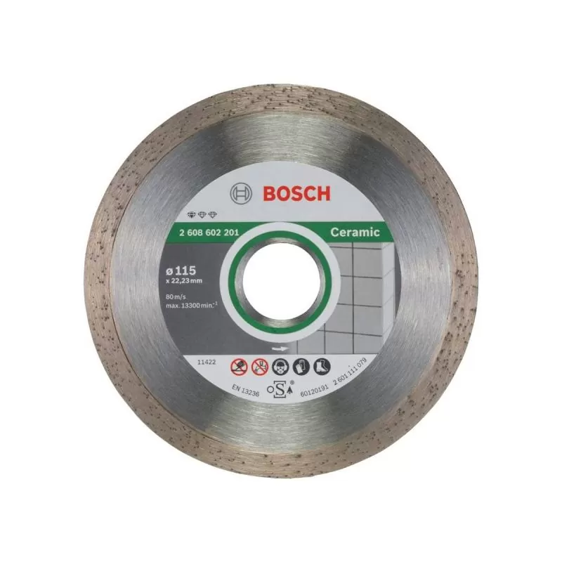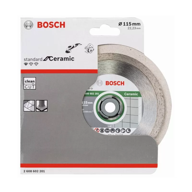 Los discos de corte de diamante Standard for Cerámica proporcionan cortes seguros en baldosas. Su borde de corte continuo consigue resultados precisos en todo tipo de baldosas. Además, los altos estándares de calidad del disco están garantizados por el centro de competencia en diamantes de Bosch, en Suiza. Utilice este disco para cortar cerámica, porcelana y gres. Es compatible con amoladoras angulares.