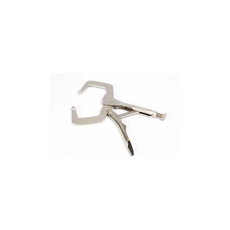 El Stanley Hombresolo Tipo C 11" Ref. 84-399 es un alicate de presión profesional diseñado para sujetar firmemente piezas metálicas, láminas o materiales durante trabajos de soldadura, mecánica y reparación. Su diseño con perfil profundo en forma de “C” permite alcanzar áreas de difícil acceso y aplicar una presión fuerte y estable para mayor precisión y seguridad en el trabajo.