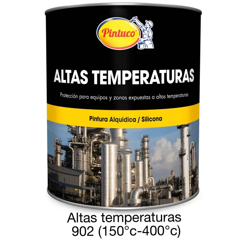 Pintura altas temperaturas 902 (150°c-400°c) es una pintura a base de silicona y grafito, de excelente adherencia, flexibilidad y resistencia a temperaturas hasta 400°C en seco.