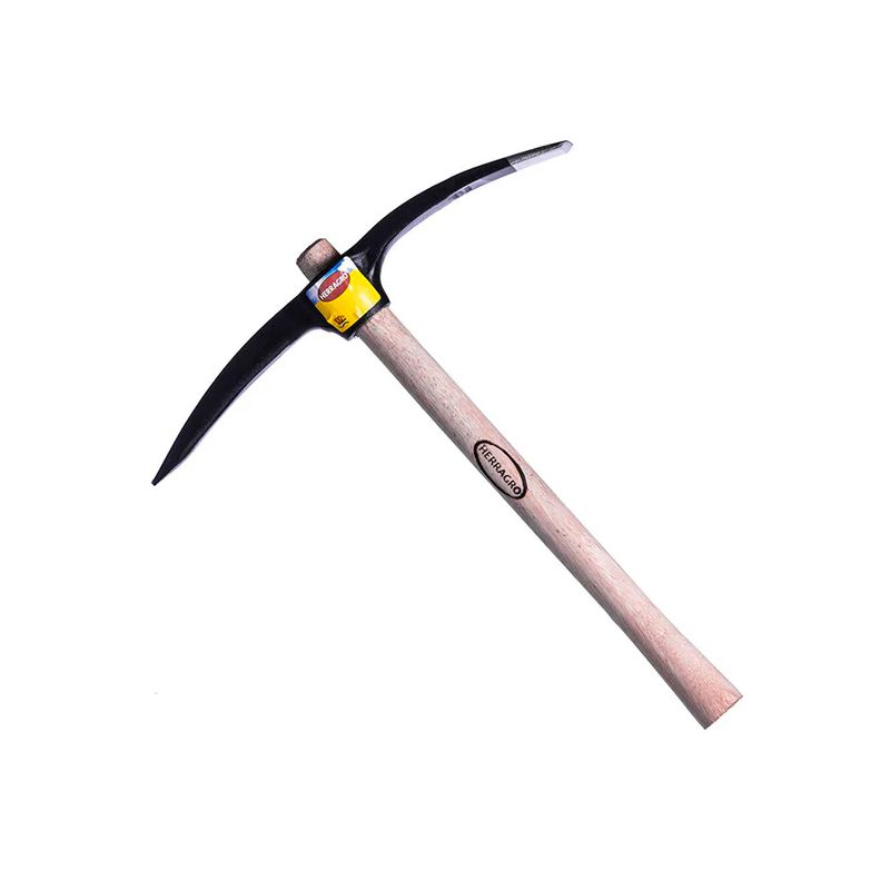 Piqueta Herragro con mango de madera, diseñada para trabajos exigentes de construcción y jardinería. Su cabeza de acero resistente y su diseño de doble punta permiten romper, cavar y remover materiales con mayor eficiencia y precisión.