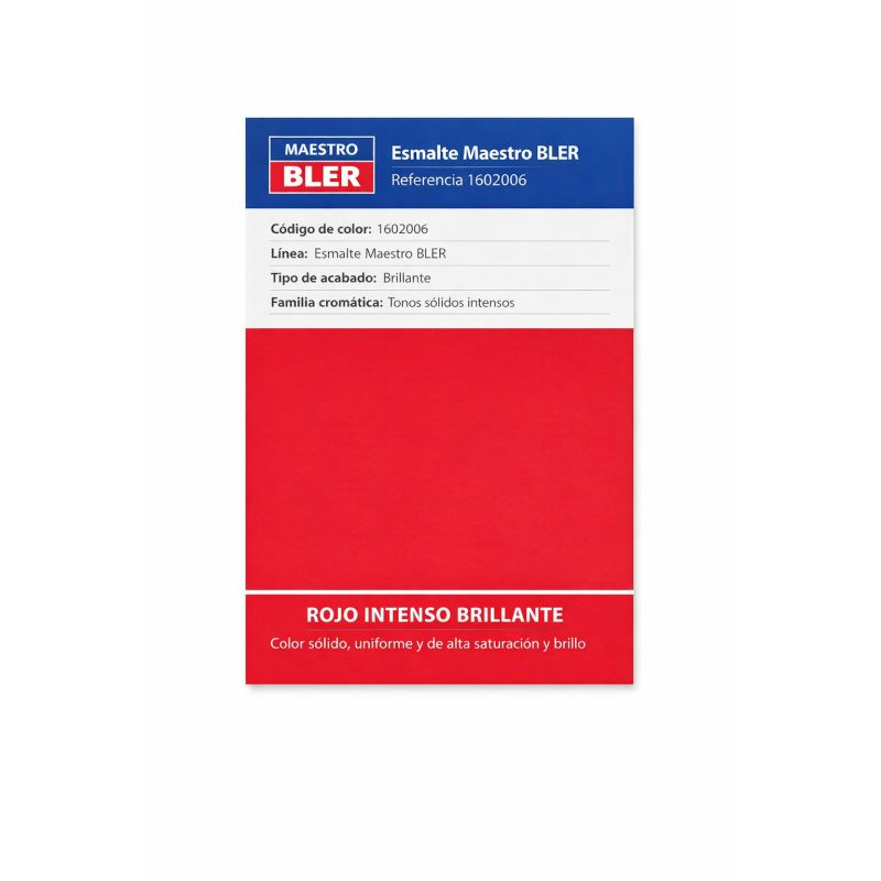 Esmalte Maestro BLER 1602006 es un esmalte sintético de acabado brillante, color rojo intenso, ideal para uso interior y exterior. Ofrece excelente cubrimiento, alta retención de color y protección anticorrosiva, garantizando un acabado duradero y uniforme sobre metal y madera.