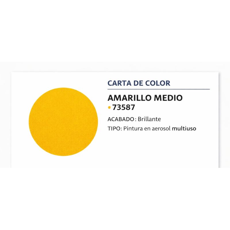 La pintura en aerosol Masso Amarillo Medio es un recubrimiento multiuso diseñado para ofrecer un acabado profesional con aplicación rápida y sencilla. Su fórmula de secado rápido permite optimizar los tiempos de trabajo, mientras que su alto poder cubriente garantiza resultados uniformes con pocas capas. El color amarillo medio es un tono intenso y visible, ideal para proyectos decorativos, señalización y mantenimiento de superficies.