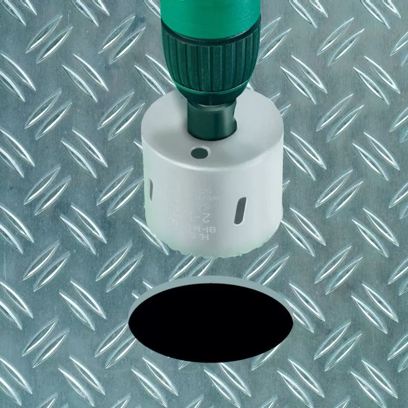 La sierra de copa bimetálica se adapta a todos los adaptadores estándar del mercado, corta en varios materiales. La configuración del diente (tira de dientes Vario) es ideal para deslizarse a través del material para realizar cortes rápidos y precisos. Use esta sierra de vidrio para cortar madera, metal, acero inoxidable y plásticos.