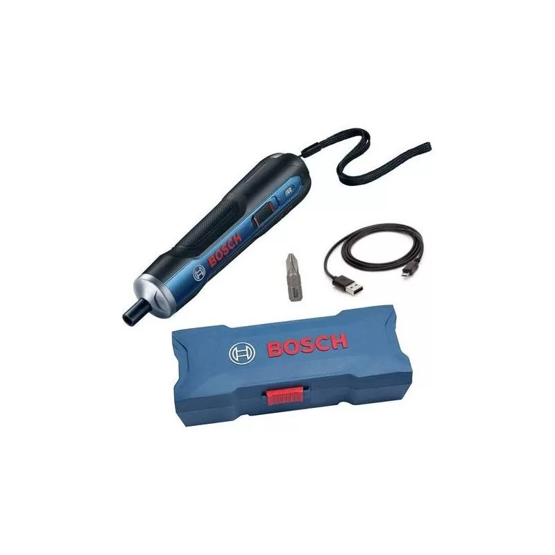 Atornillador Inalámbrico Bosch Go de 3,6V BIVOLT con batería de 1,5Ah, pesa 0,31kg. Es la evolución del atornillador manual. Cuenta con el Sistema Push&Go. Compacto, liviano y potente, con 6 opciones de configuración de torque para su trabajo. La Tecnología ECP protege electrónicamente las celdas de la batería garantizando mayor vida útil y el cargador BIVOLT USB es compatible con el cargador de su celular. Tiene 1 año de garantía y viene en maletín plástico.