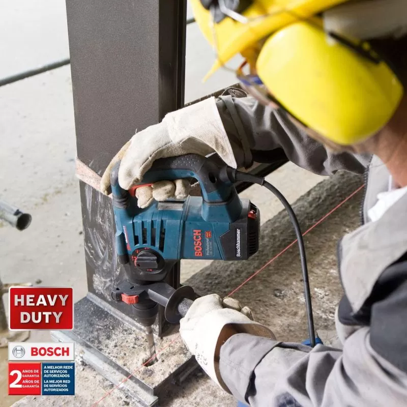Martillo Perforador Demoledor GBH 3-28 DRE con 800 W y sistema de cambio rápido de accesorios SDS-Plus, es ideal para trabajos pesados en la construcción civil, reformas, instalaciones en general y ofrece un óptimo rendimiento de perforación en hormigón, en diámetros de 18 a 28mm. Robusto y compacto, su manipulación es cómoda, con empuñadura en “L” es seguro, ya que trae el sistema de reducción de vibraciones y embrague de seguridad, protegiendo al operador en caso de trabado del accesorio. Tiene 2 años de garantía y viene en maletín plástico.